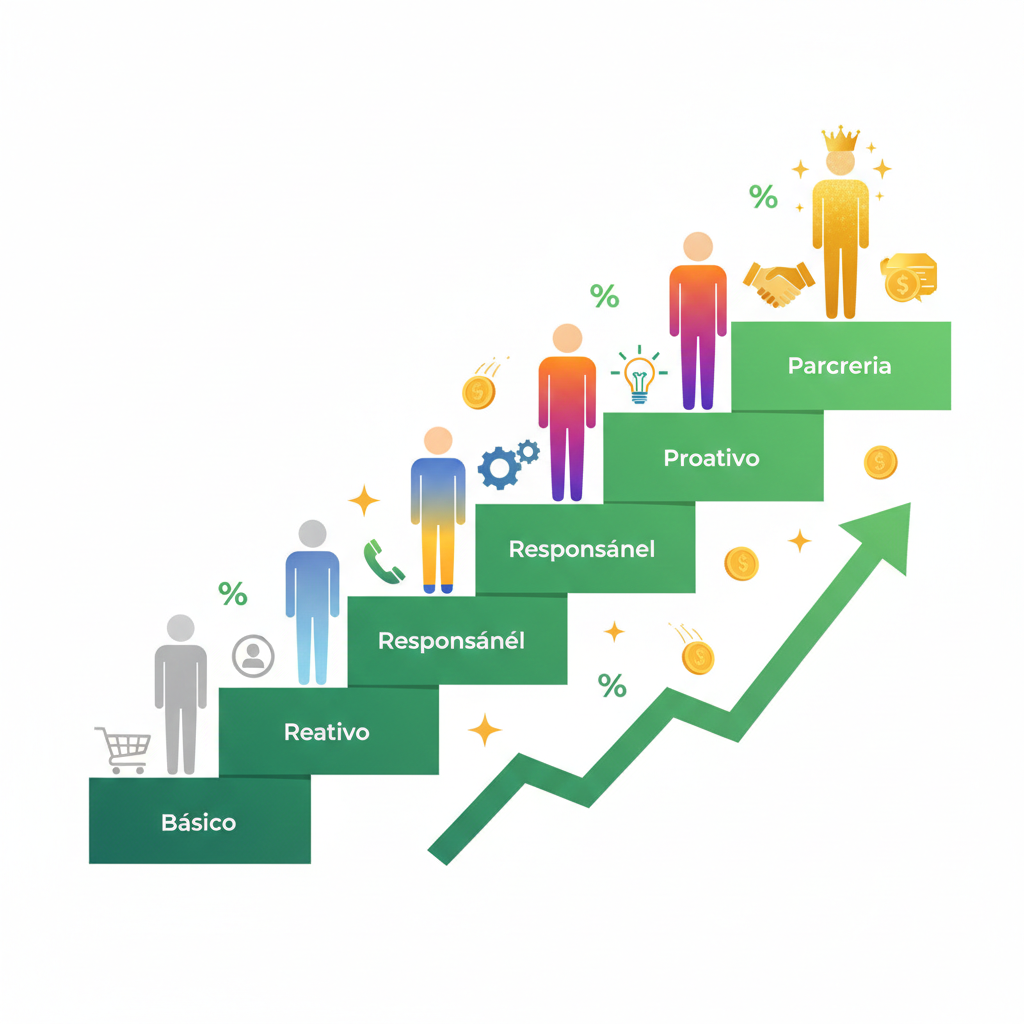 Objetivo é escalar progressivamente esses níveis, construindo relacionamentos cada vez mais sólidos e lucrativos.